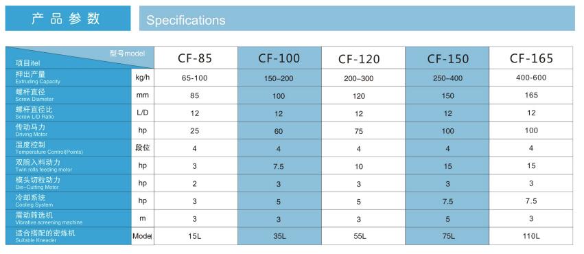 此機臺用于PVC,EVA,TPR等塑膠原料的生產,包括主機,雙腕入料,模頭切粒等系統將密煉機攪拌好的原料經雙腕擠入造粒機內經螺桿擠出后切成粒子,此機臺操作簡單